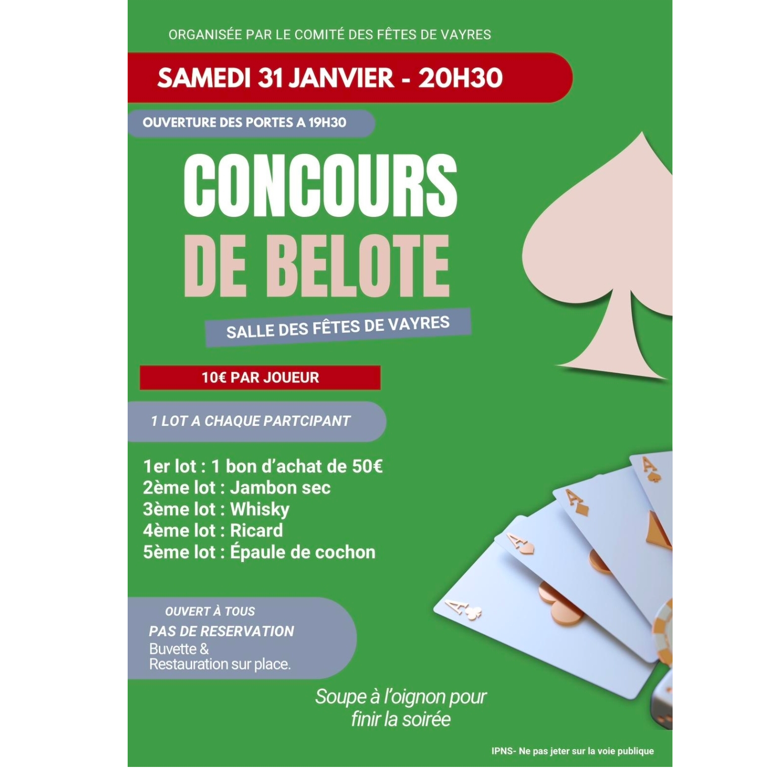 Le comité des fêtes organise un concours de belote samedi 31 janvier à 20h30 à la salle polyvalente